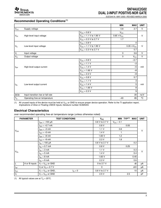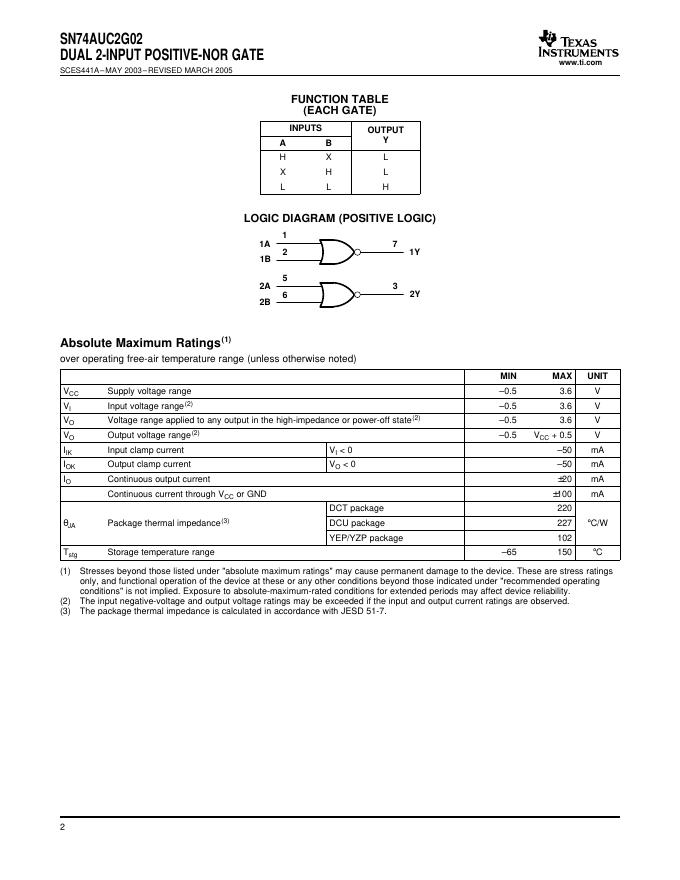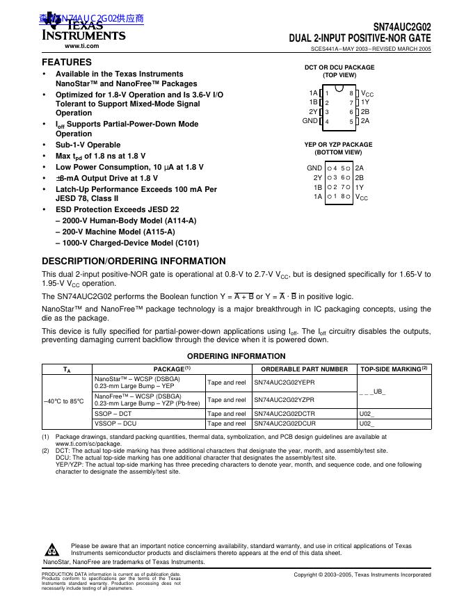 TEXAS INSTRUMENTS SN74AUC2G02 DUAL 2-INPUT POSITIVE-NOR GATE 数据手册.pdf