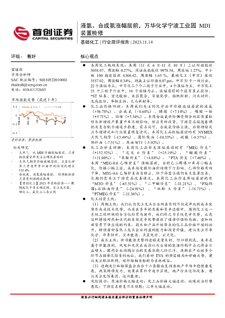首创证券:基础化工行业简评报告:液氯、合成氨涨幅居前,万华化学宁波工业园MDI装置检修.pdf