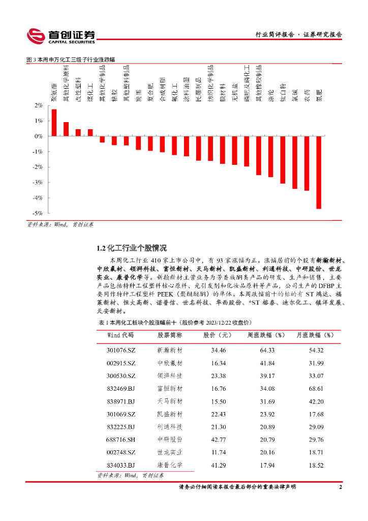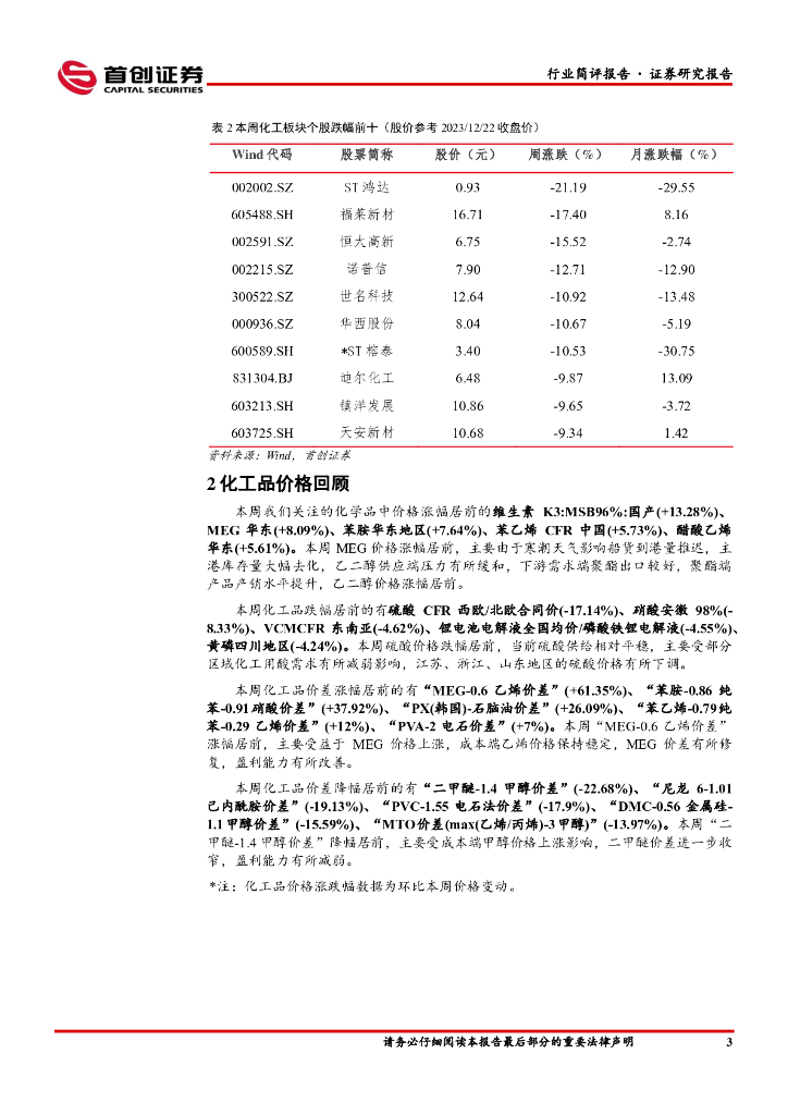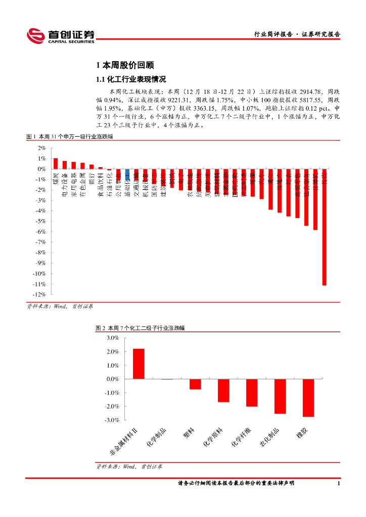首创证券:基础化工行业简评报告:乙二醇价格涨幅居前,荣盛石化24万吨/年聚醚多元醇项目投产.pdf