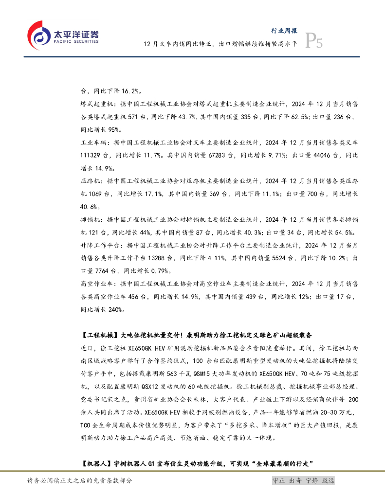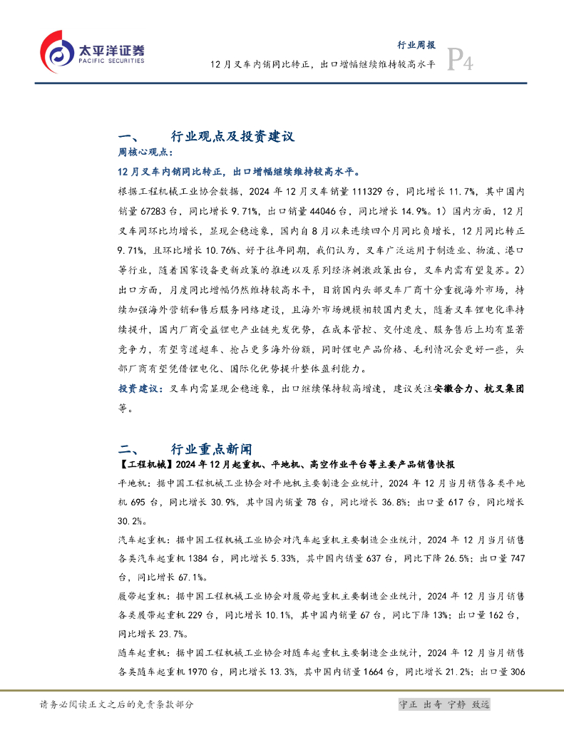 太平洋证券:机械行业周报:12月叉车内销同比转正,出口增幅继续维持较高水平.pdf