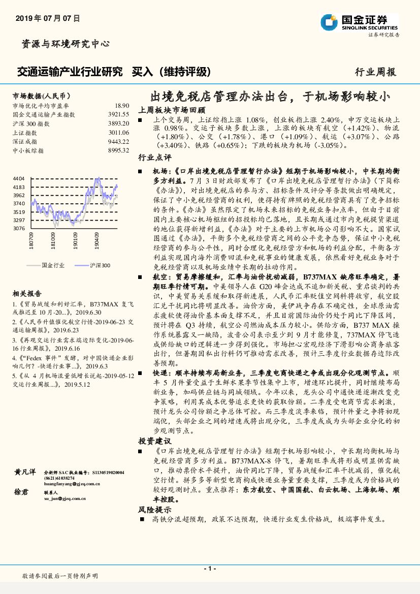 国金证券:交通运输产业行业研究:出境免税店管理办法出台,于机场影响较小.pdf