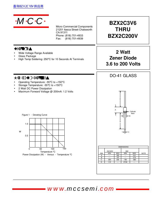MCC BZX2C3V6 THRU BZX2C200V 数据手册.pdf