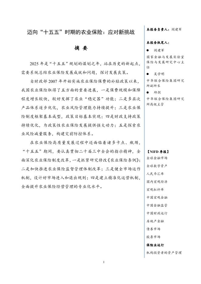 NIFD季报:迈向“十五五”时期的农业保险:应对新挑战——2025年H1保险业运行.pdf