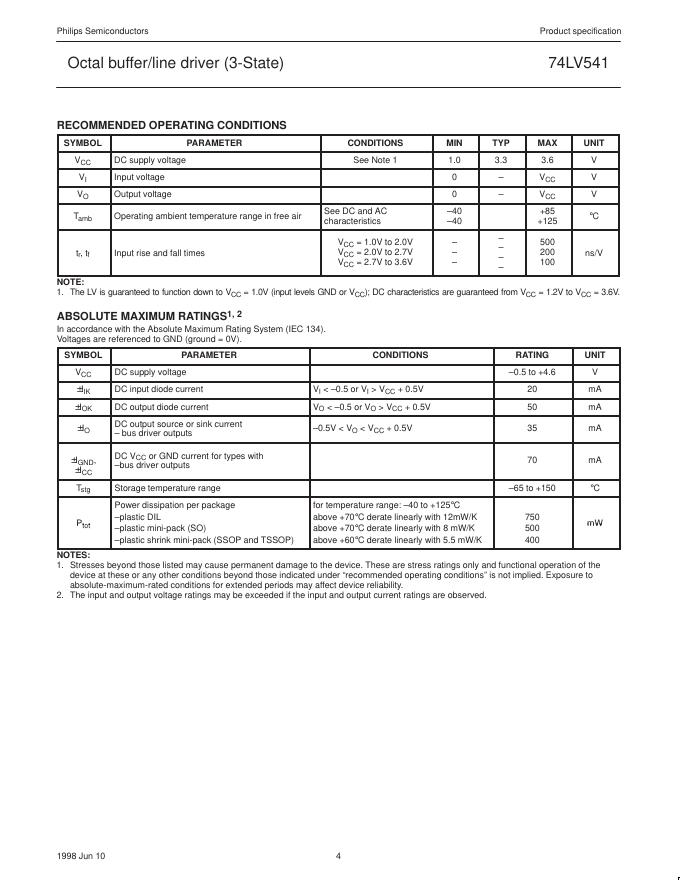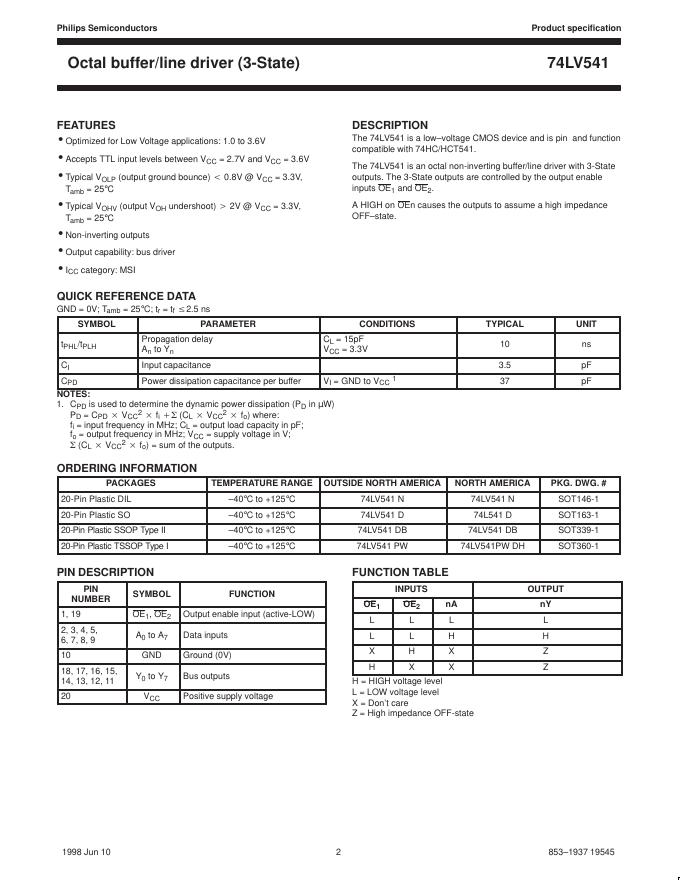 PHILIPS 74LV541 Octal buffer/line driver (3-State) 数据手册.pdf