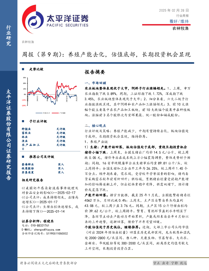 太平洋证券:农林牧渔行业周报(第9期):养殖产能去化,估值底部,长期投资机会显现.pdf