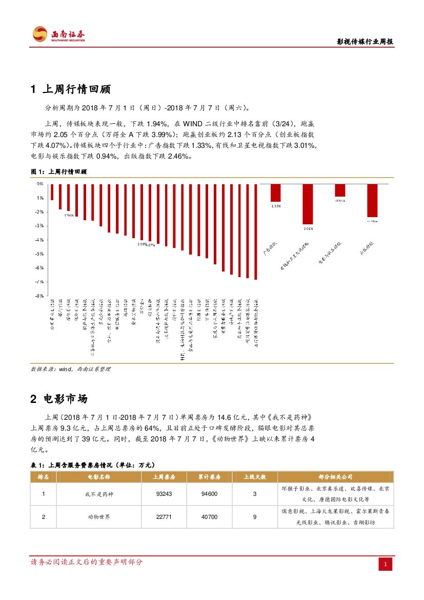 西南证券:影视传媒行业周报:《我不是药神》引爆暑期档,成现象级大片.pdf