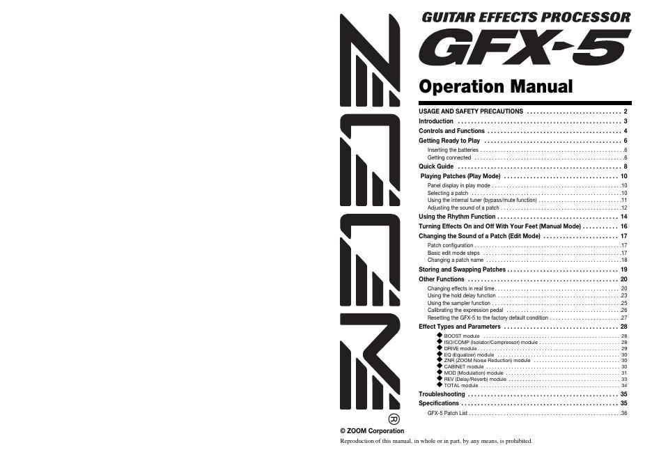 ZOOM GFX-5 GUITAR EFFECTS PROCESSOR 操作手册.pdf