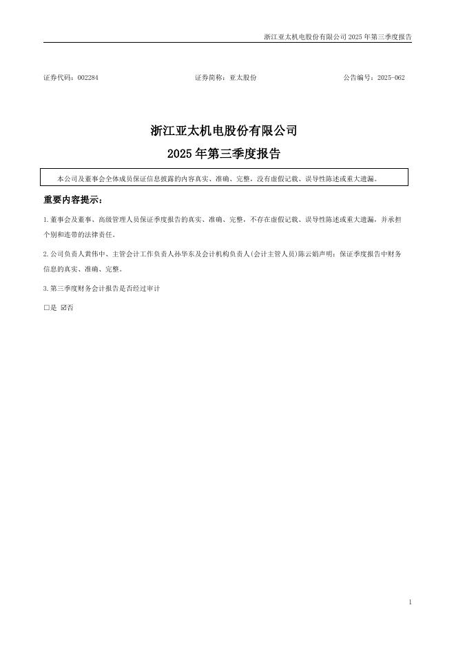 002284-亚太股份:2025年三季度报告.pdf