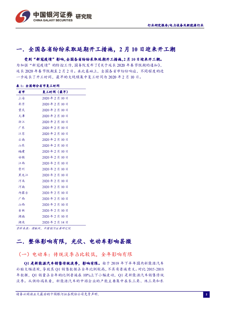 中国银河:电力设备及新能源行业:“新冠疫情”短期影响有限,继续看好光伏、电动车的年度投资机会.pdf
