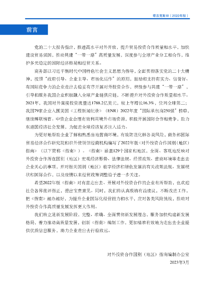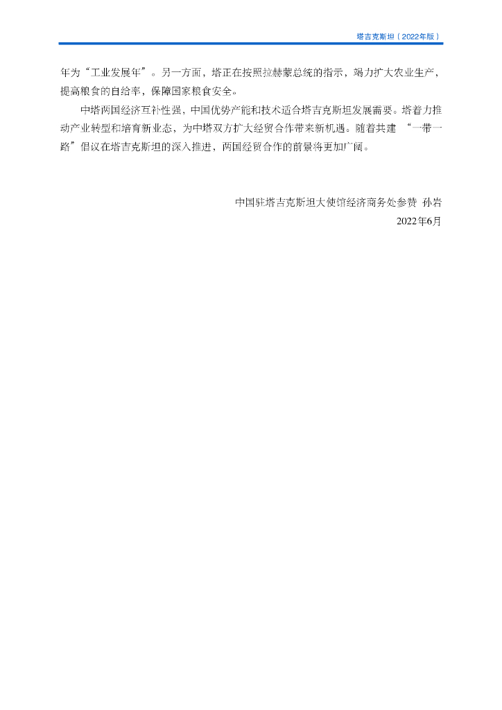 商务部:对外投资合作国别(地区)指南:塔吉克斯坦(2022年版).pdf