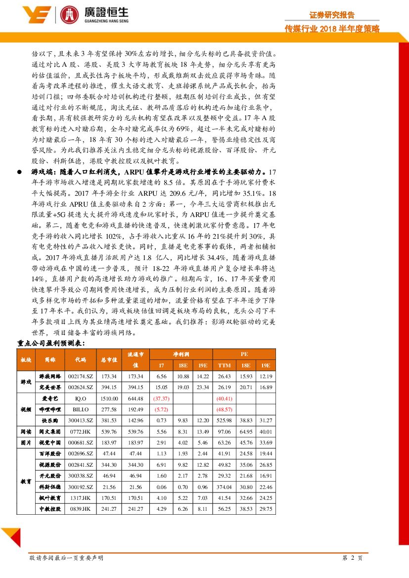 广证恒生证券研究所:传媒行业2018半年度策略:轻装上阵成长性预期改善,关注版权付费与教育.pdf