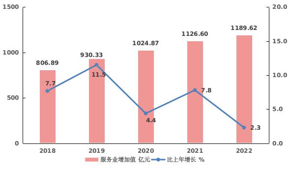 图2 2018-2022年三次产业增加值占地区生产总值比重