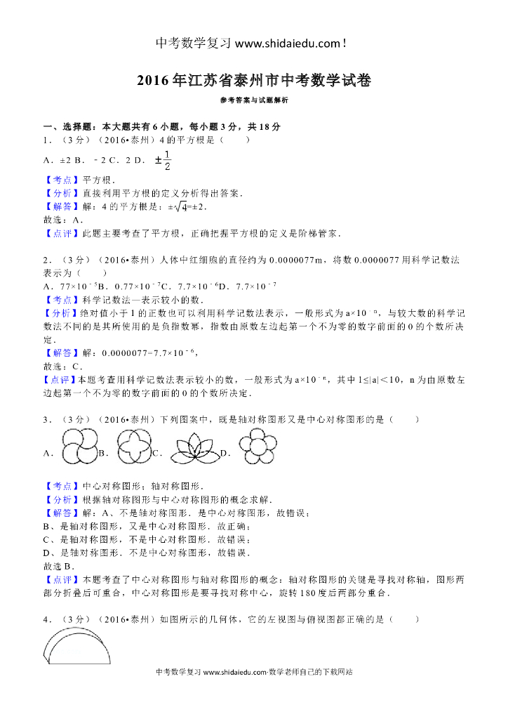 中考数学试题(含答案解析)-(18).doc
