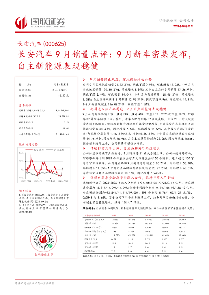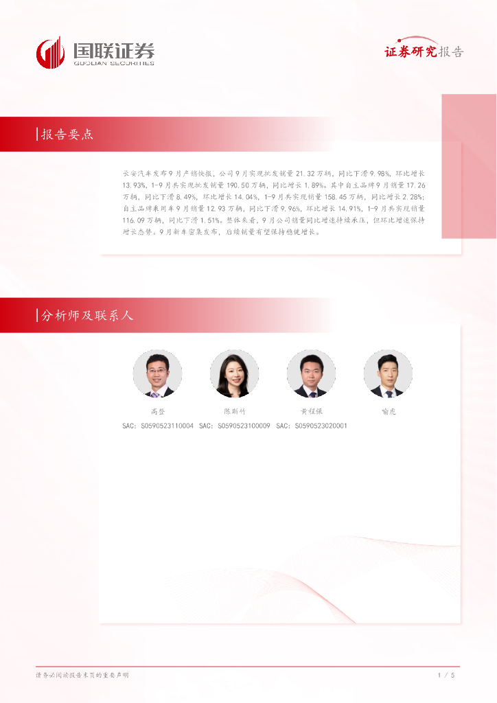 国联证券:长安汽车9月销量点评:9月新车密集发布,自主新能源表现稳健.pdf