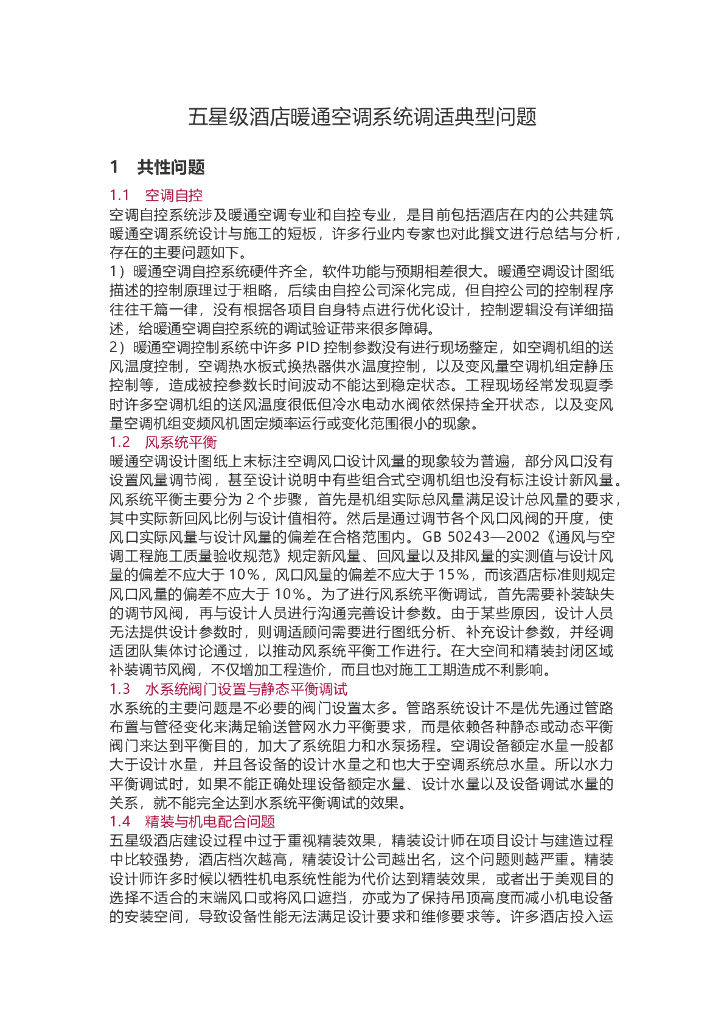 五星级酒店暖通空调系统调适典型问题.doc