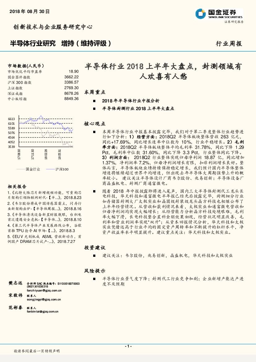 国金证券:半导体业周报:半导体行业2018上半年大盘点,封测领域有人欢喜有人愁.pdf