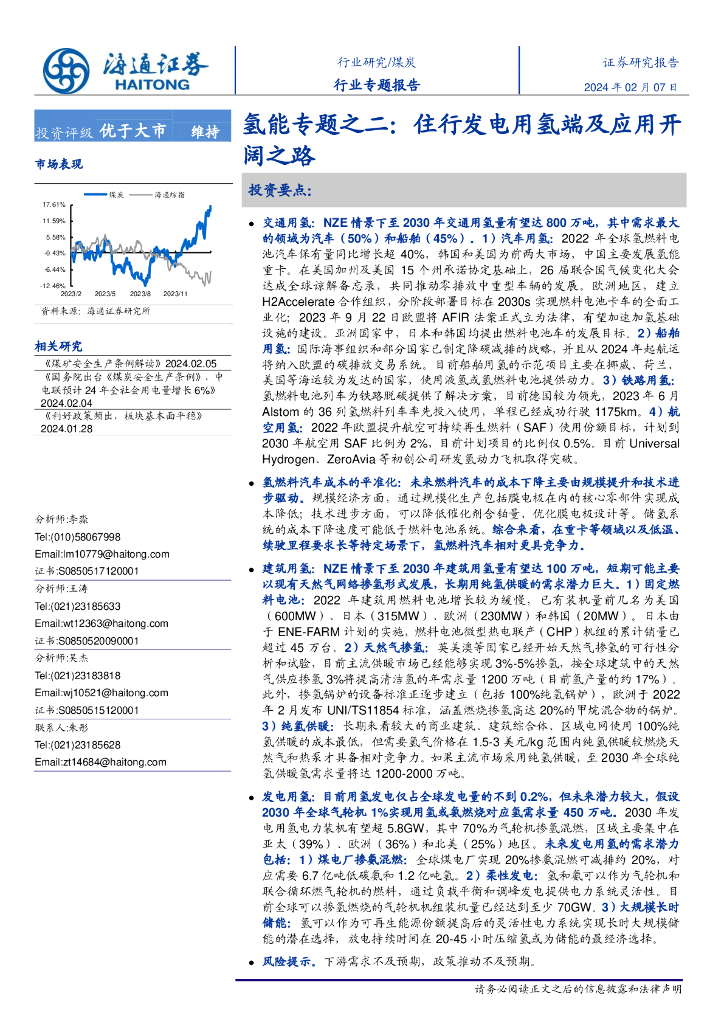 海通证券:氢能专题之二:住行发电用氢端及应用开阔之路.pdf