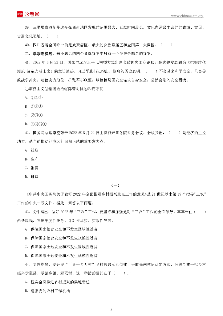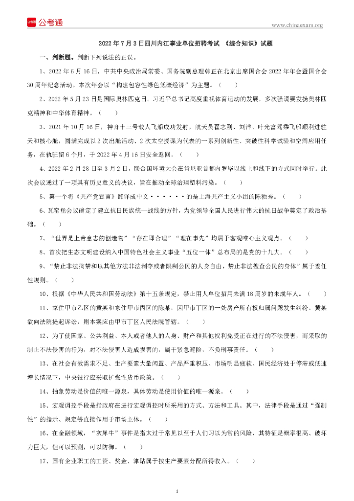 2022年7月3日四川内江事业单位招聘考试 《综合知识》试题.pdf