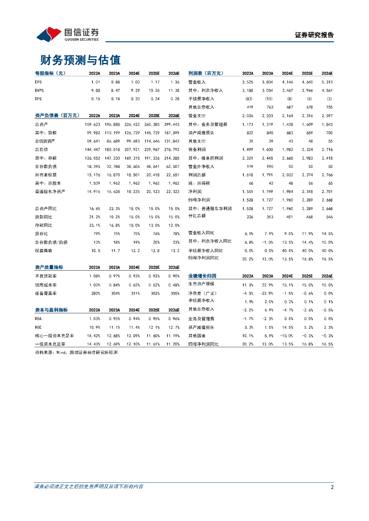 国信证券:瑞丰银行(601528)-2024年一季报点评:营收实现15%的增长,资产质量稳健.pdf