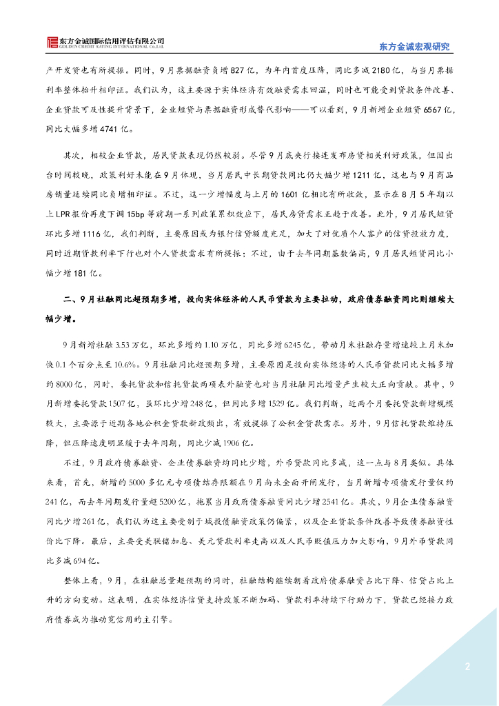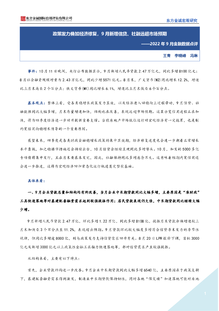 东方金诚:2022年9月金融数据点评-政策发力叠加经济修复,9月新增信贷、社融远超市场预期.pdf