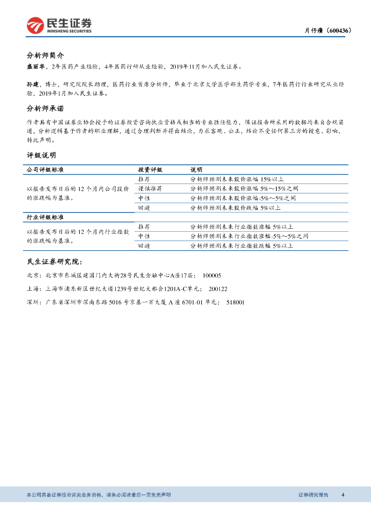 民生证券:片仔癀2019年报及2020年1季报点评:疫情影响下保持快速增长,渠道拓展投入增加驱动核心产品快速增长.pdf