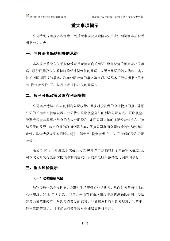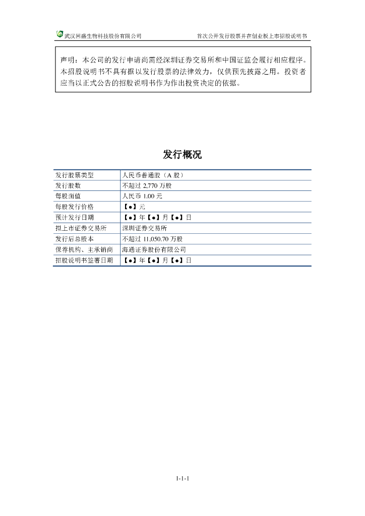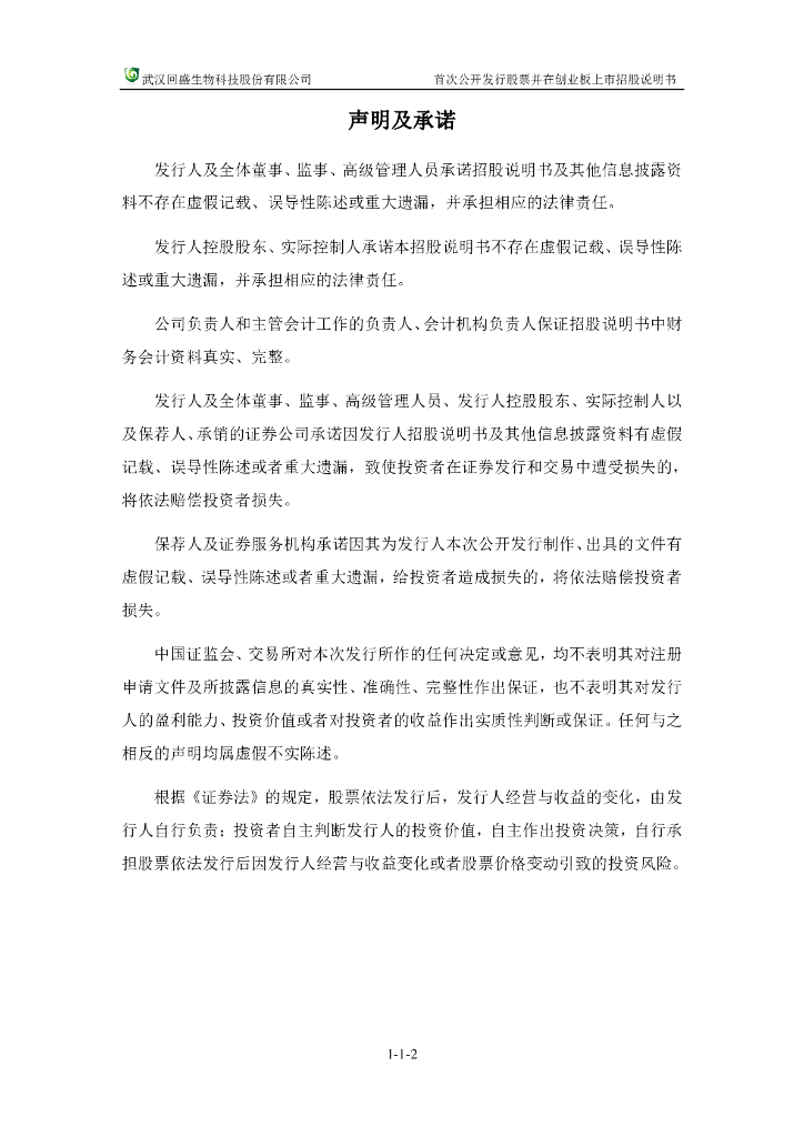 武汉回盛生物科技股份有限公司深交所创业板IPO上市招股说明书.pdf