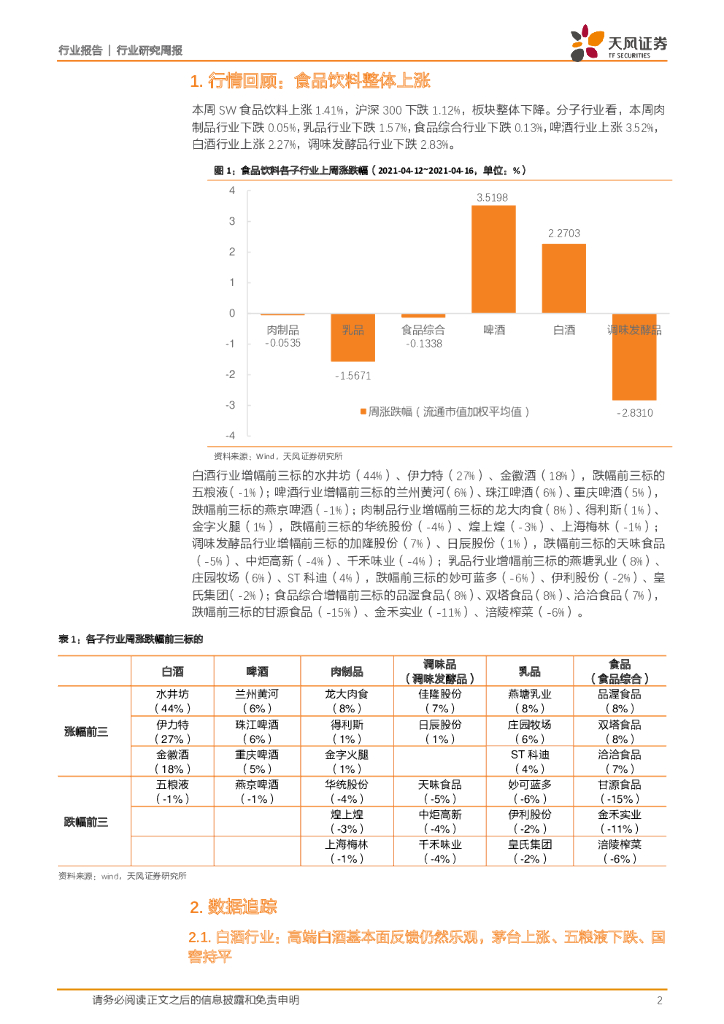 天风证券:食品饮料行业:白酒次高端弹性趋向共识,啤酒和低温奶仍是投资主线.pdf