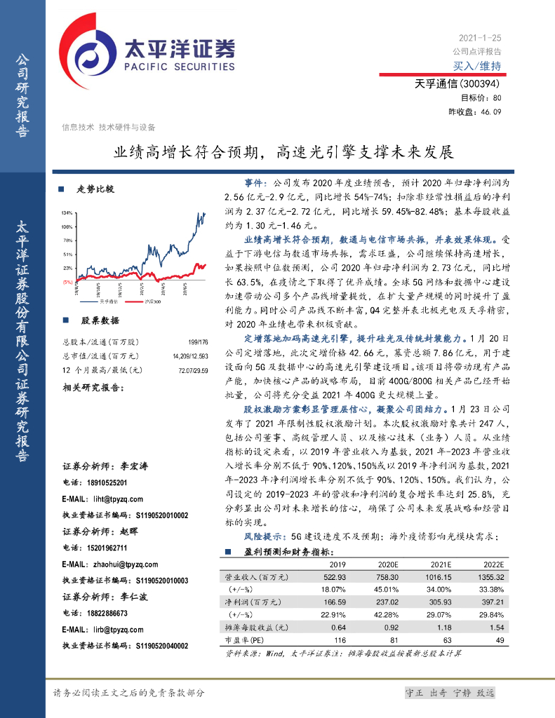 太平洋证券:天孚通信(300394)-业绩高增长符合预期,高速光引擎支撑未来发展.pdf