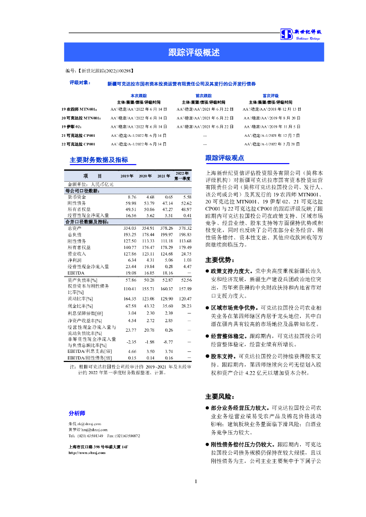 新世纪:新疆可克达拉市国有资本投资运营有限责任公司及其发行的公开发行债券跟踪评级报告.pdf