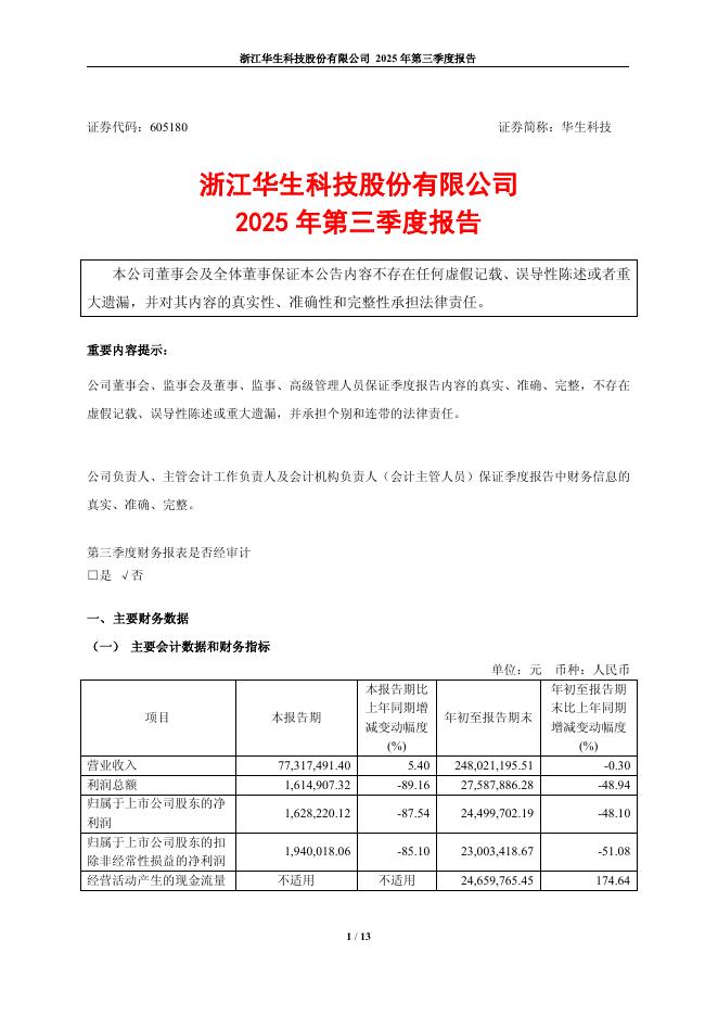 605180-华生科技:2025年第三季度报告.pdf
