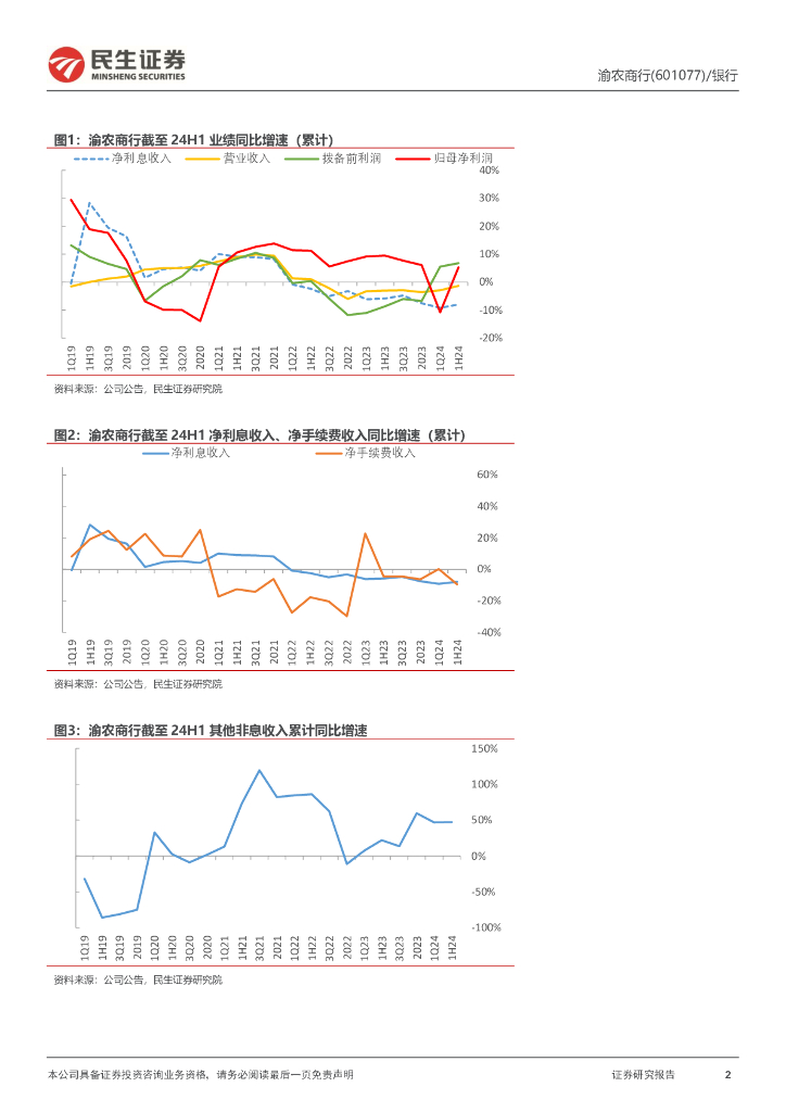 民生证券:渝农商行(601077)-2024年半年报点评:利润增速显著回升,拟实施中期分红.pdf