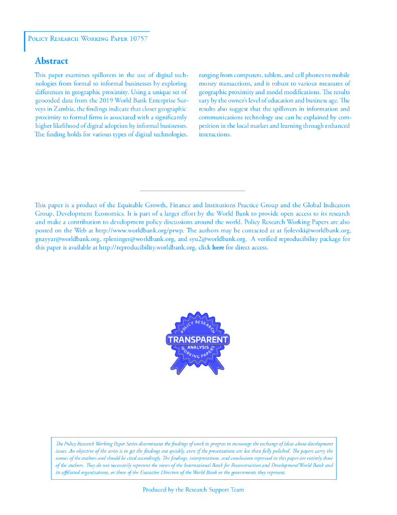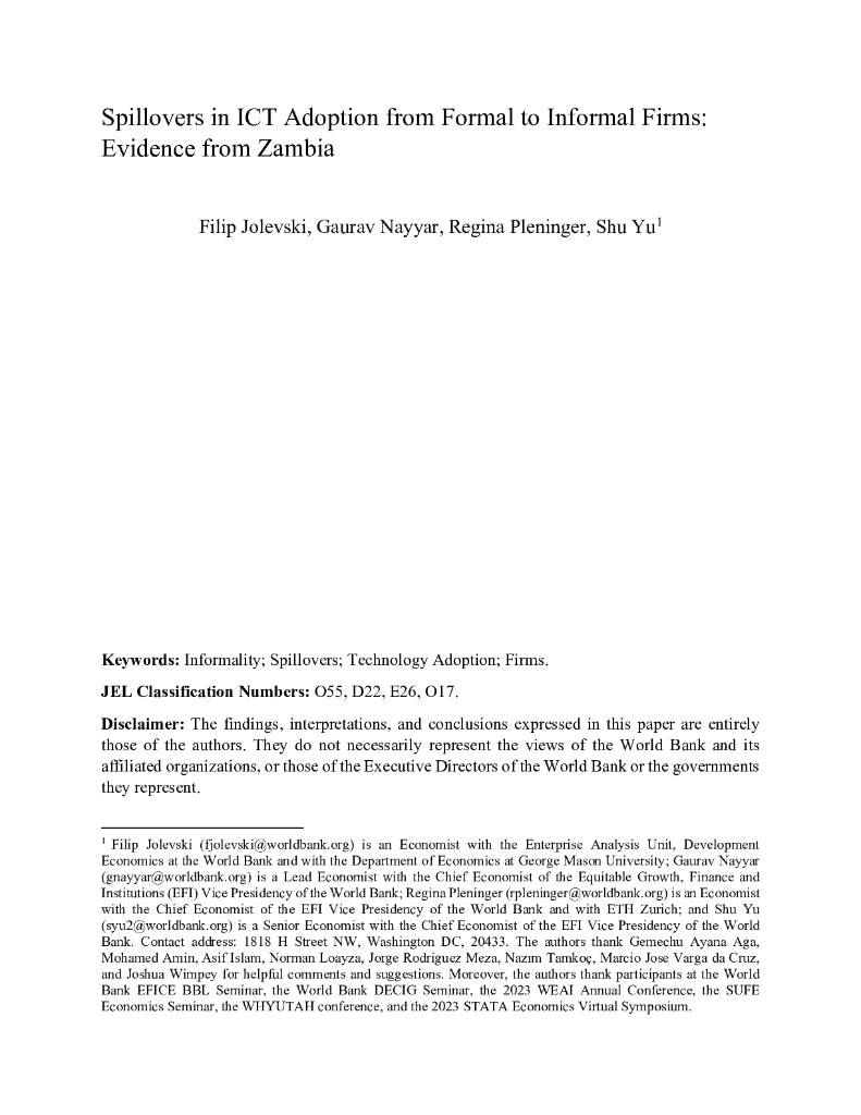 世界银行:正规企业向非正规企业采用信通技术的溢出效应:来自赞比亚的证据(英文版).pdf