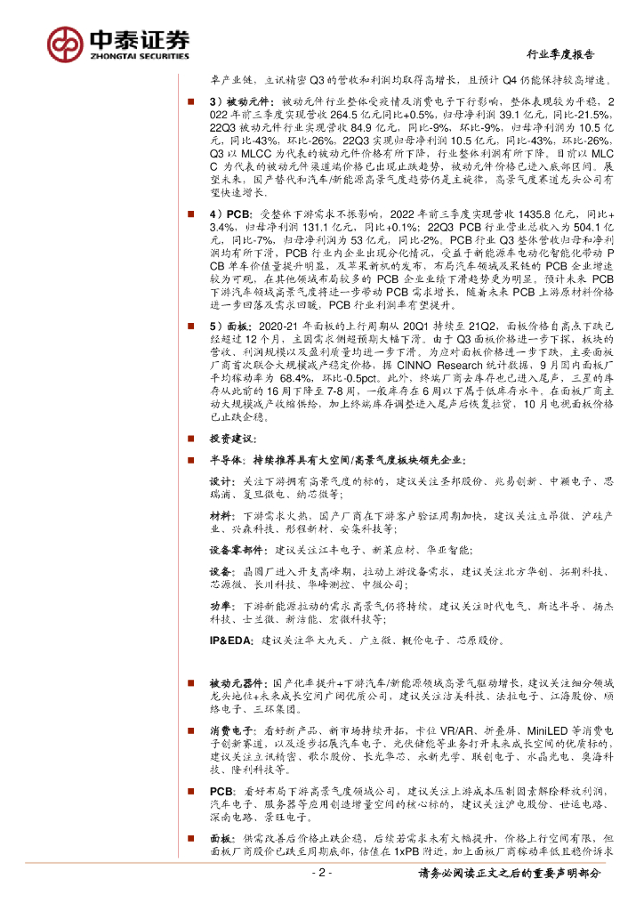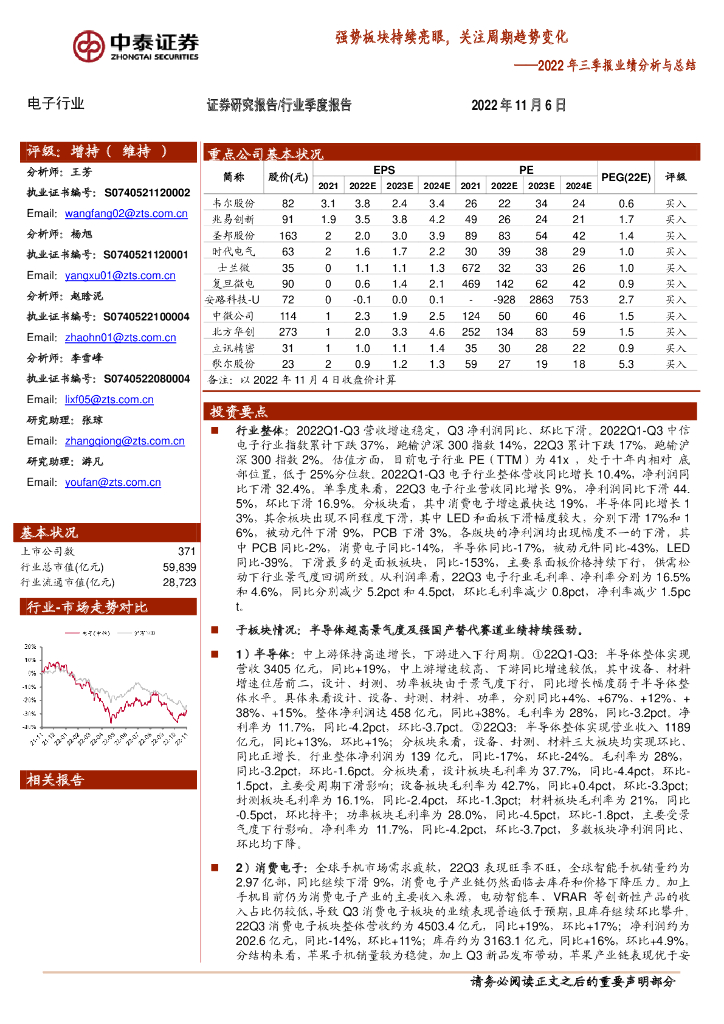 中泰证券:电子行业2022年三季报业绩分析与总结:强势板块持续亮眼,关注周期趋势变化.pdf