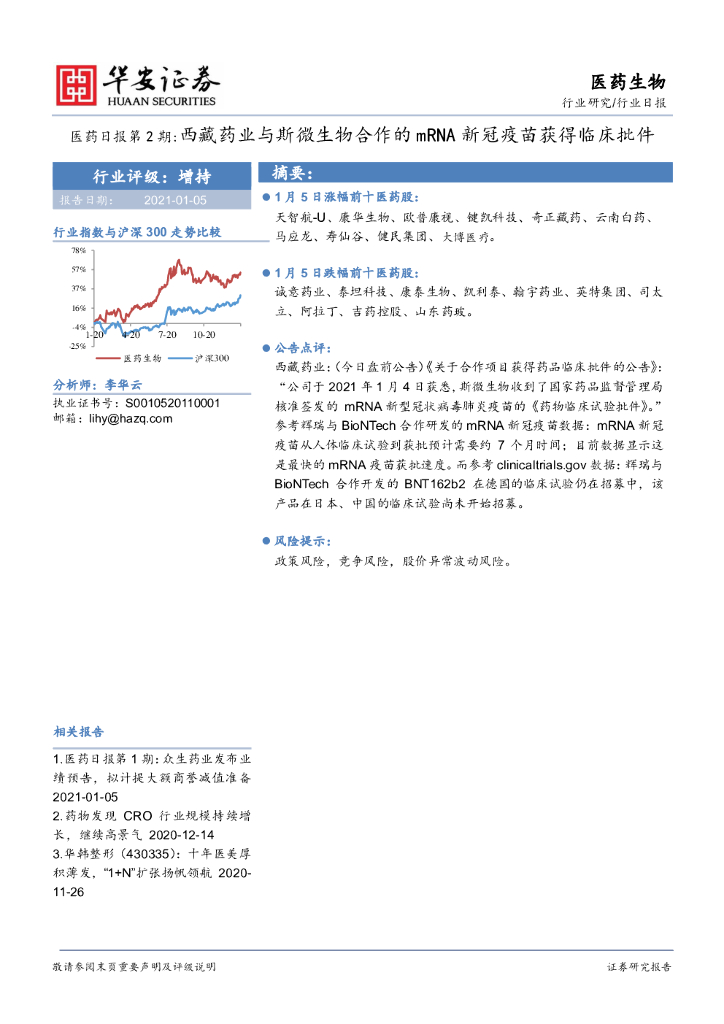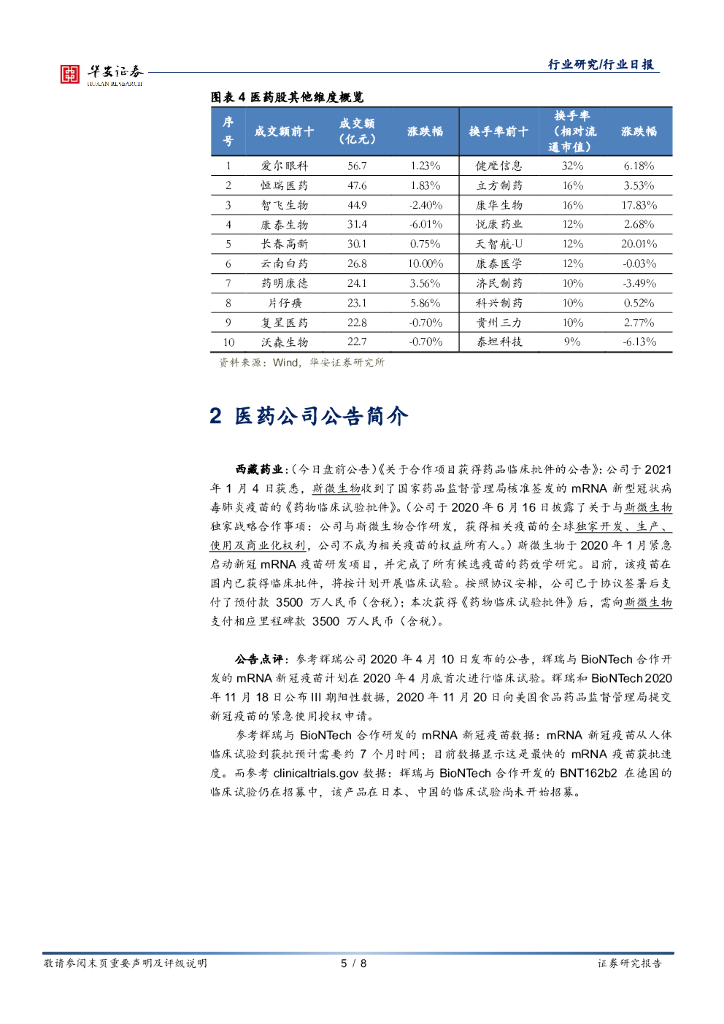 华安证券:医药日报第2期:西藏药业与斯微生物合作的mRNA新冠疫苗获得临床批件.pdf