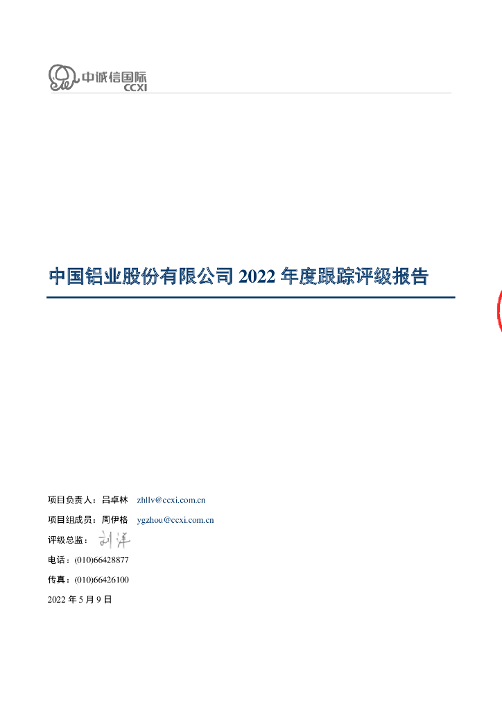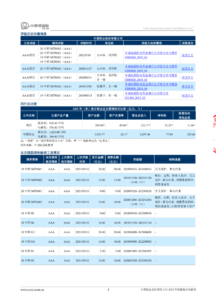中诚信:中国铝业股份有限公司2022年度跟踪评级报告.pdf