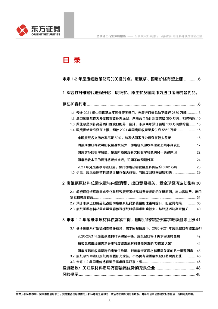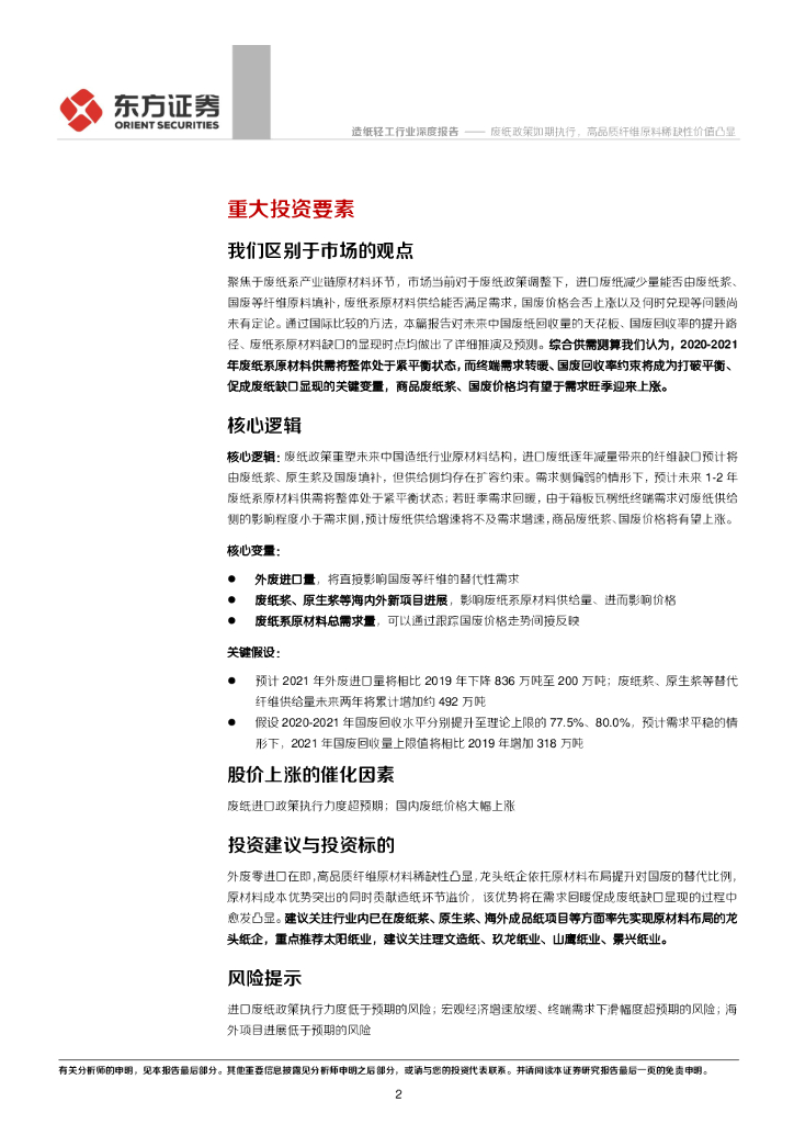 东方证券:造纸行业研究系列之二"废纸系原材料价格前瞻":废纸政策如期执行,高品质纤维原料稀缺性价值凸显.pdf