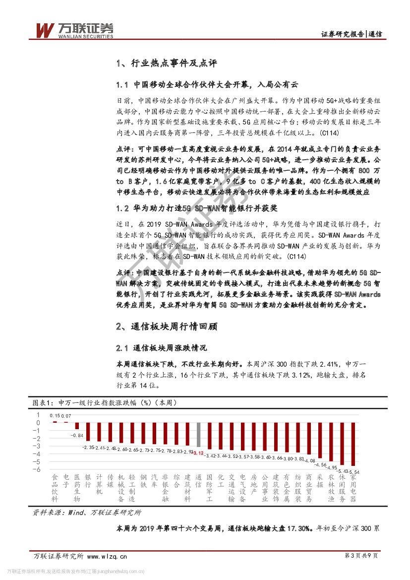 万联证券:通信行业周观点:中国移动入局公有云,华为助力SD-WAN.pdf