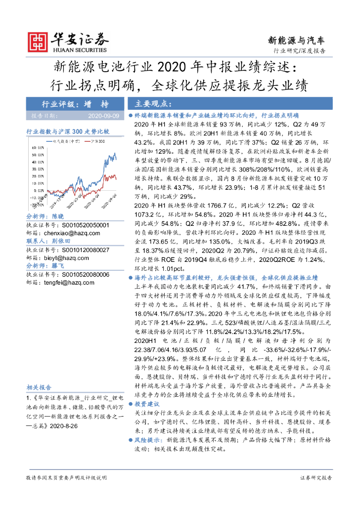 华安证券:新能源电池行业2020年中报业绩综述:行业拐点明确,全球化供应提振龙头业绩.pdf