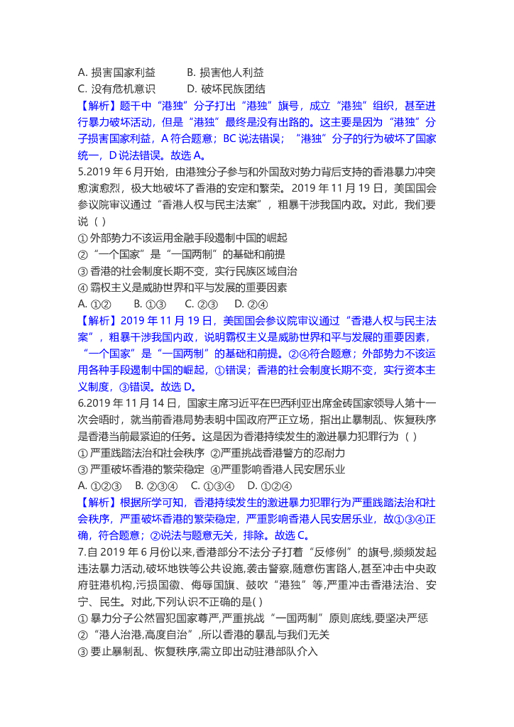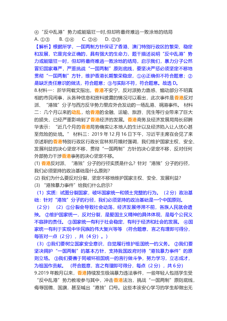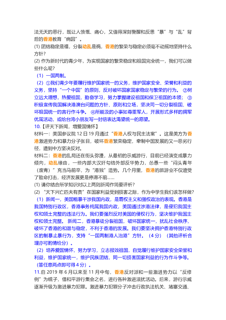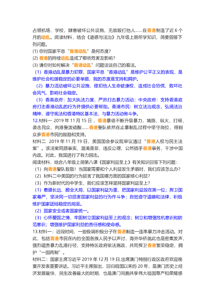 道德与法治中考重点词练习:香港暴乱.doc