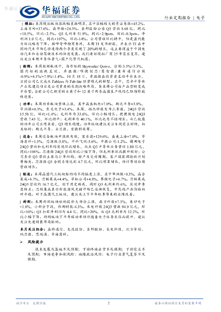 华福证券:半导体周跟踪:电子Q3业绩景气,车规半导体有望复苏.pdf