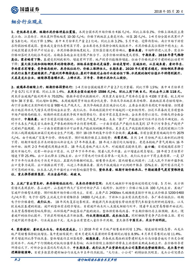 国盛证券:建筑材料行业周报:环保大会强化供给侧逻辑,贸易摩擦缓和提升风险偏好.pdf