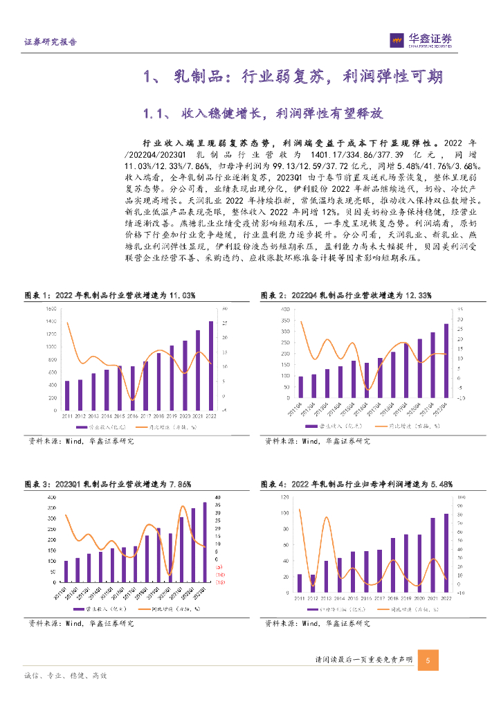 华鑫证券:乳制品板块2022年及2023Q1总结:行业弱复苏,利润弹性可期.pdf