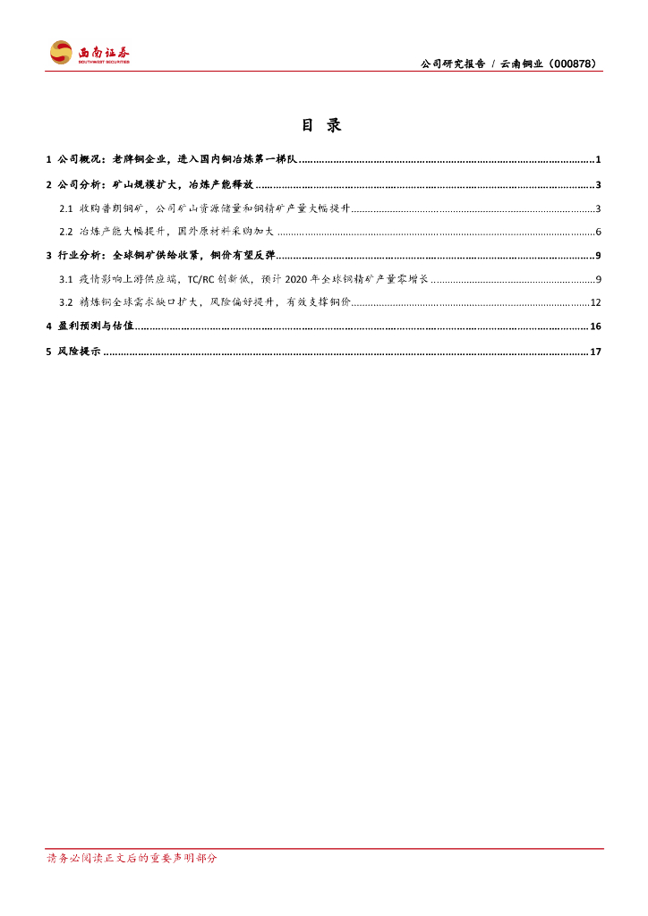 西南证券:云南铜业(000878)-采选冶炼产能释放,业绩步入稳定增长期.pdf