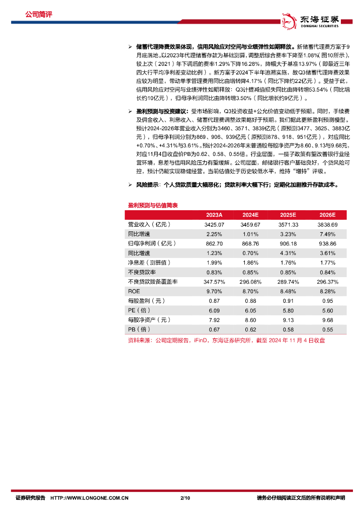 东海证券:邮储银行(601658)-公司简评报告:负债成本优势保持,储蓄代理降费效果体现.pdf