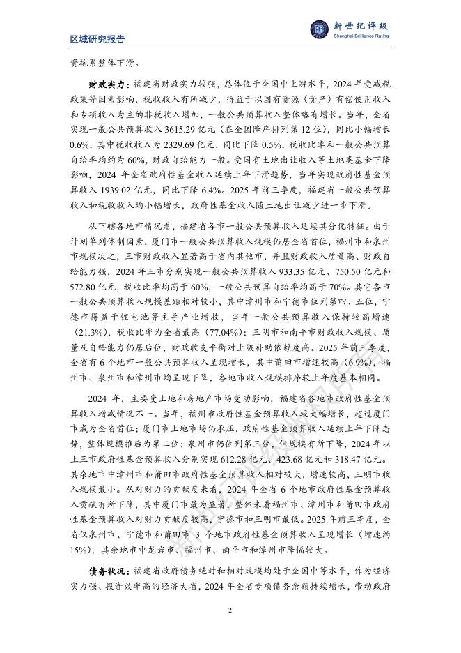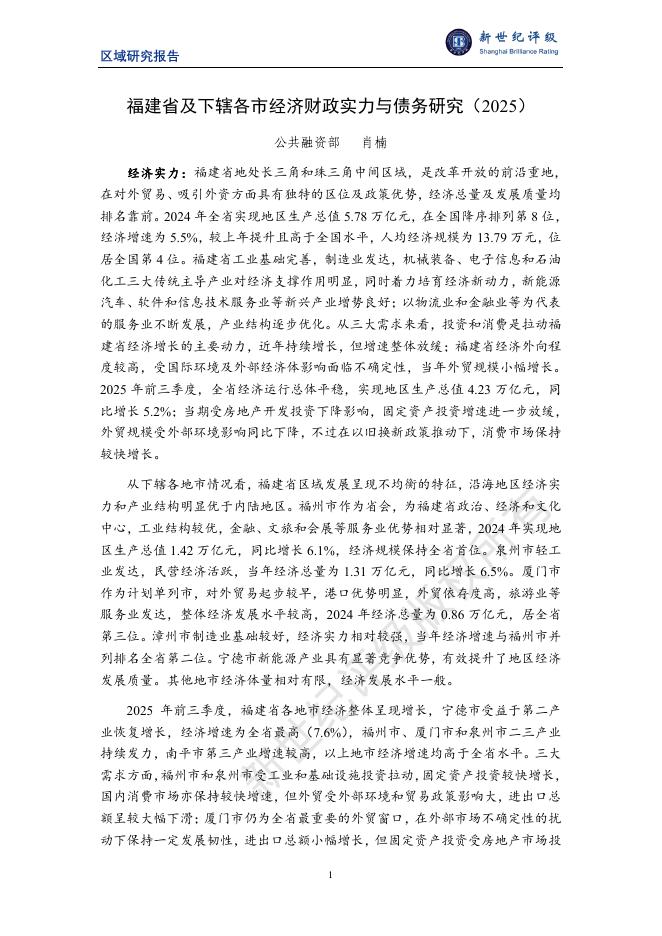 新世纪评级:福建省及下辖各市经济财政实力与债务研究(2025).pdf
