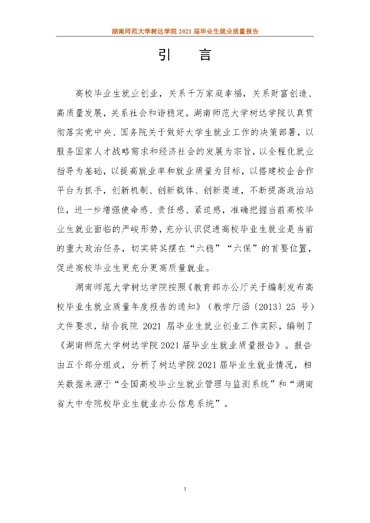 湖南师范大学树达学院2021届毕业生就业质量报告.pdf
