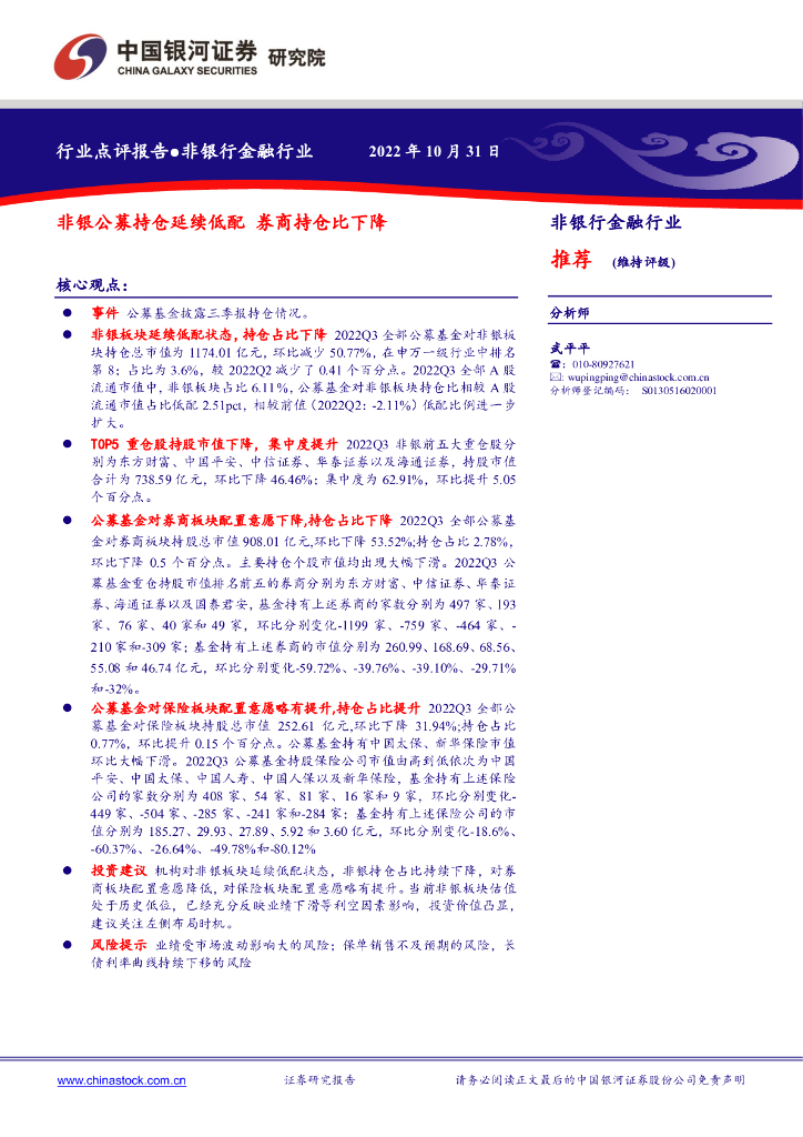 中国银河:非银行金融行业:非银公募持仓延续低配 券商持仓比下降.pdf