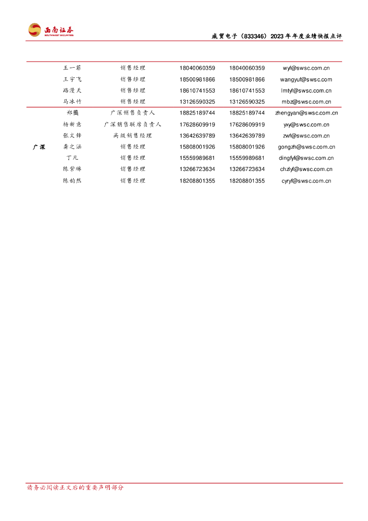 西南证券:威贸电子(833346)-2023年年度业绩快报点评:产品结构持续优化,集成组件化策略提升23年盈利能力.pdf