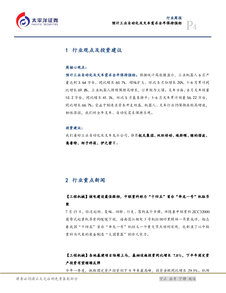 太平洋证券:机械行业周报:预计工业自动化及叉车需求全年保持强劲.pdf