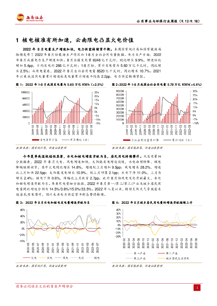 西南证券:公用事业与环保行业周报:核电核准有所加速,云南限电凸显火电价值.pdf